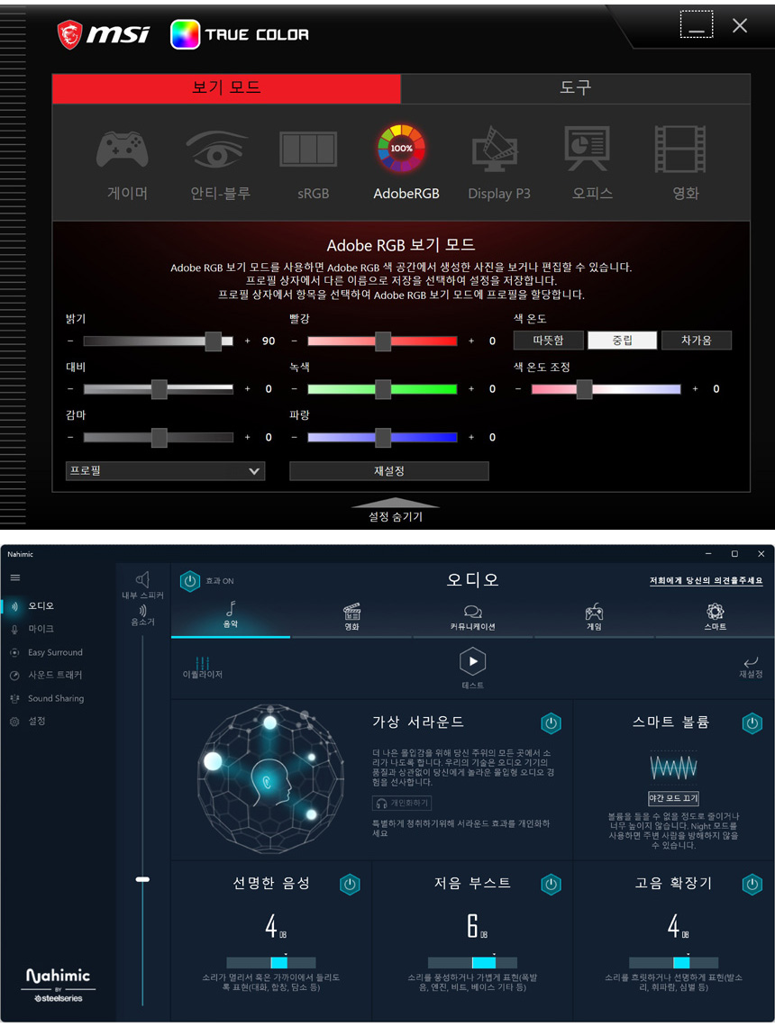 트루컬러 지원으로 컨텐츠에 맞는 최적의 영상을 즐길 수 있으며 나히믹 오디오 지원으로 사용자에 맞는 최적의 음색을 설정할 수 있다. 특히 나히믹에서는 블루투스 스피커 연결시 본체 스피커와 연동해 향상된 입체음향을 제공하는 이지 서라운드 기능을 제공한다.