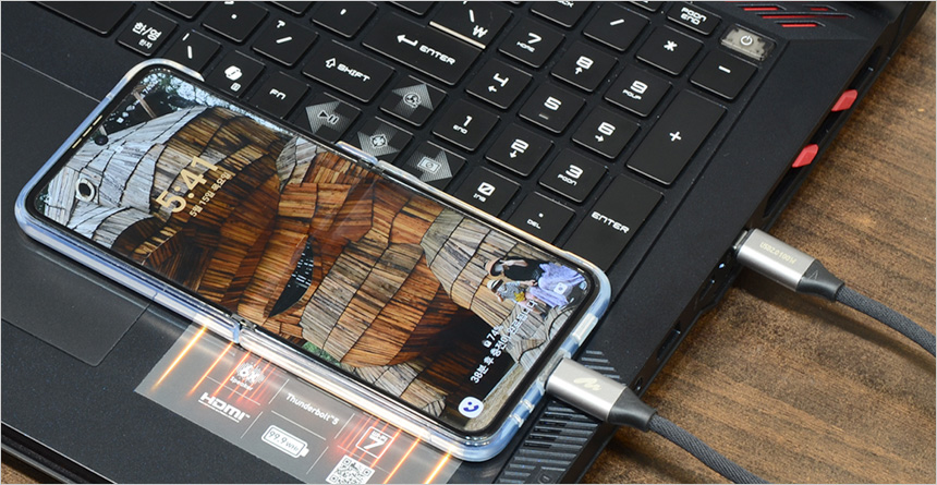 썬더볼트 4 단자는 상시전원을 지원해 (단, 노트북 전원이 연결되어 있어야 한다.) 노트북이 꺼진 상태에서도 스마트폰 충전이 가능하다.
