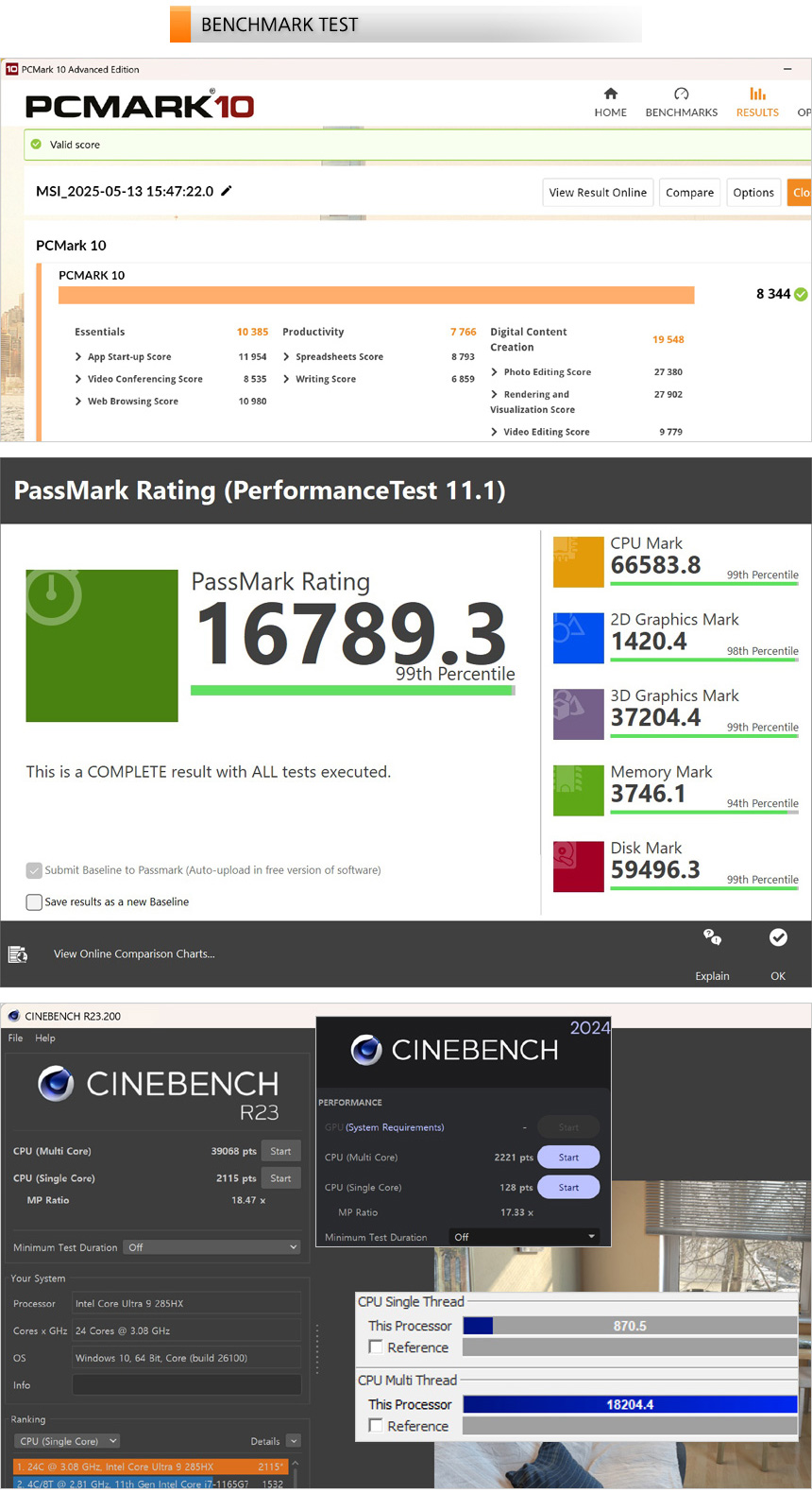 전작대비 성능 향상히 크지 않으리라 예상하고 테스트를 진행했는데 분명한 성능향상을 보여주었다. (14900HX & RTX 4090을 탑재한 전작과 벤치, 게임 프레임을 비교했는데 대부분의 스코어나 프레임이 높아졌다.) 게임이나 작업 성능에 목마른 유저들이라면 더할나위 없는 선택이 될 것이다.