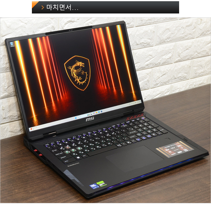 하이엔드 모델답게 최상급 디스플레이를 탑재한 것도 확인할 수 있었다. 4K 해상도의 Mini LED를 지원해 밝고 선명한 영상을 즐길 수 있으며 120Hz 주사율 지원으로 FPS 게임도 원활하게 플레이 할 수 있다. 또한 Wi-Fi 7 무선랜 지원으로 초고속 무선 데이터 전송이 가능하며 다인오디오 6 스피커를 탑재해 입체감 넘치는 사운드를 즐길 수 있다.