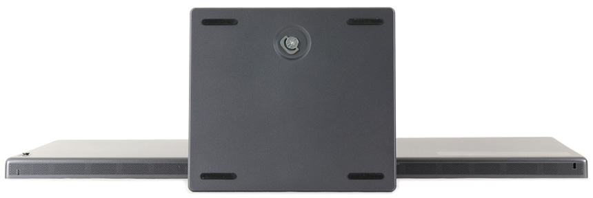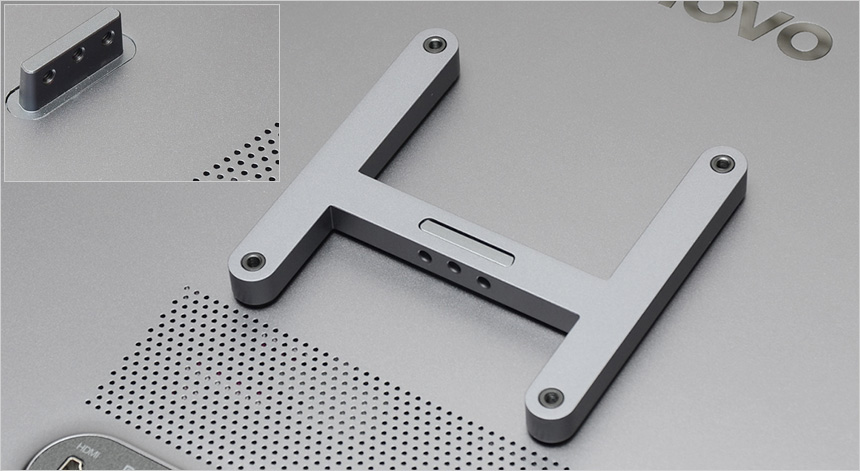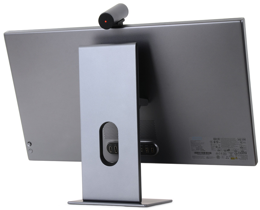 모니터 상단부의 모습으로 음성이나 기타 사운드를 인식하는 2개의 마이크가 설치되어 있고 자동밝기 조정을 위한 엠비언트 라이트 센서가 설치된 것을 확인할 수 있다. 또한 중앙에는 카메라 장착을 위한 C타입 단자를 지원한다. (카메라를 장착한 상태에서 가이드에 부착된 볼트를 드라이버로 조여주면 고정된다.)