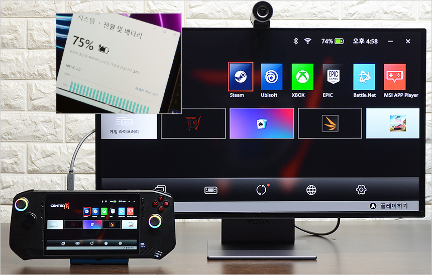 안정성을 높이기 위해 통풍구가 설치되어 있고 하단에는 HDMI 2.1과 DP 1.4, C타입의 USB4 연결단자를 지원해 다양한 디바이스와 연결해 활용할 수 있다. 뿐만 아니라 총 4개의 USB 단자가 제공되어 주변기기를 편하게 연결할 수 있다.