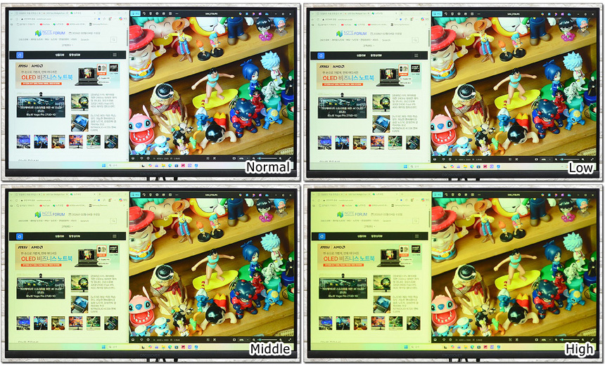 청색광을 억제해 눈을 보호하는 블루라이트 감소 기능을 지원한다. 장시간 PC를 사용하는 유저들이라면 블루라이트 감소 기능을 사용해 눈의 피로감을 최소화 할 수 있을 것이다. (색의 왜곡이 있으니 작업이나 동영상 감상보다는 웹서핑, 문서작업 등에서 활용하기 바란다.)
