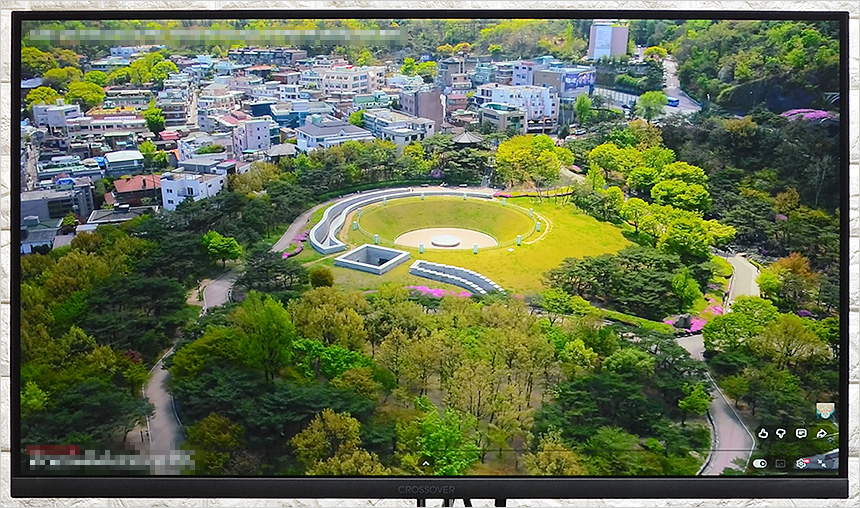 4K 해상도의 동영상을 이용해 멀티미디어 테스트를 진행하고 있는 모습으로 IPS 패널 특유의 밝고 선명한 영상을 즐길 수 있었다. 27형 대화면에 슬림베젤 탑재로 몰입감을 높인 모니터로 만족스럽게 고화질 영상을 즐길 수 있을 것이다.