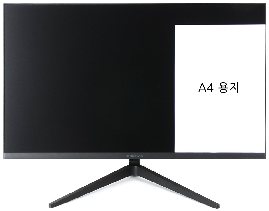 전면 하단부의 모습으로 중앙에 크로스오버 로고가 세겨져 있으며 하단에는 통풍구가 설치된 것을 확인할 수 있다. (참고로 스피커는 지원하지 않는다.) 크로스오버 279FG9 iPS-HDR 패스트144 게이밍은 유저들의 눈건강을 생각한 모델로 안티글레어 타입을 적용해 반사로 인한 스트레스를 최소화 했으며 블루라이트 감소와 플리커 프리 기술을 지원해 시력저하나 장시간 PC사용으로 인한 눈의 피로감을 최소화 한다.