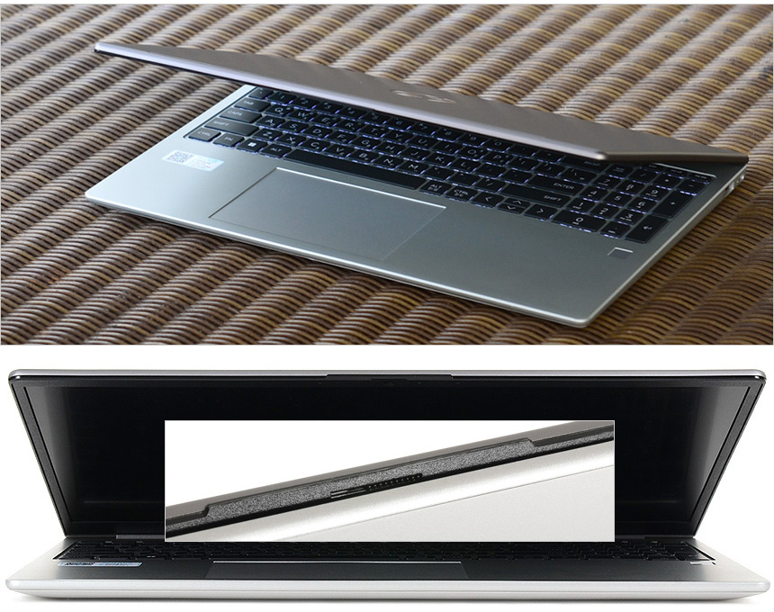 노트북 상단에는 통풍구가 설치되어 있고 1열에는 다양한 펑션키를 제공해 편의성을 높였다. 또한 측면에는 전원 버튼이 설치되어 있고 팜래스트 중앙에는 터치패드가 설치되어 마우스를 사용하기 힘든 외부에서 노트북을 편하게 조작할 수 있다. 가성비에 특화된 노트북임에도 지문인식 센서를 제공하는 것도 큰 장점이라 할 수 있다. 윈도우즈 헬로에서 지문을 등록해 놓으면 외부에서 다른 사람들의 노트북 사용을 방지하는 것은 물론 편하게 로그인 할 수 있다.