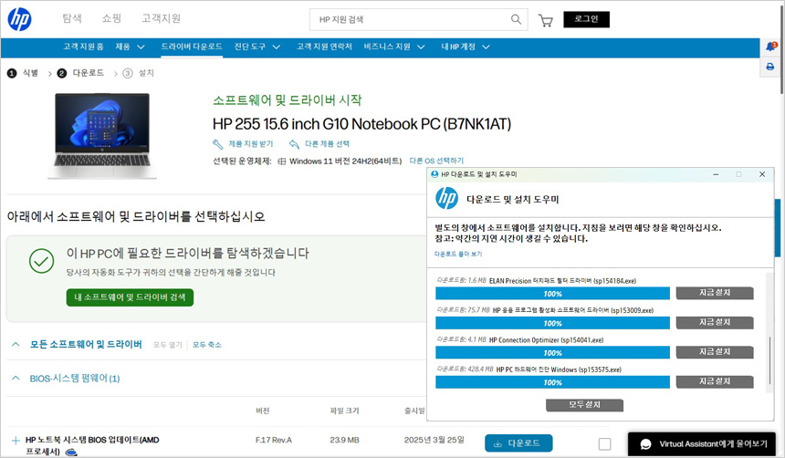 프리도스 모델이지만 손쉽게 드라이버를 다운로드 받을수 있어 초보자도 쉽게 노트북을 셋팅 할 수 있다. 윈도우를 설치하고 HP 홈페이지에 있는 고객지원에 접속하면 자동으로 노트북을 검색해 편하게 드라이버를 설치할 수 있다. (무선랜 드라이버만 우선적으로 다운로드 받아 설치해 놓아야 한다.)