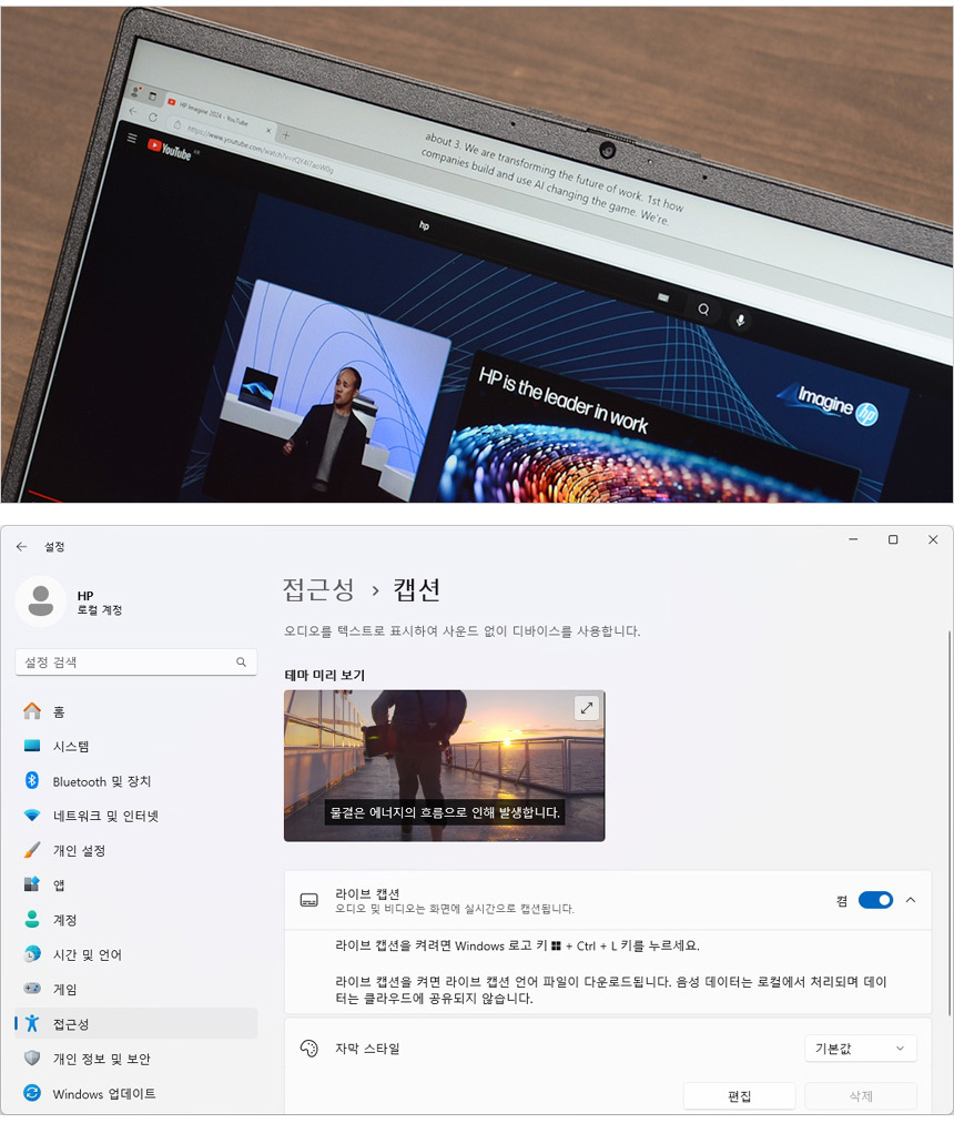 AI 가 음성을 텍스트로 변환해 주는 라이브 캡션 기능을 사용할 수 있다. 다양한 언어의 오디오 자막을 텍스트로 표시해 주어 사무실 등에서 스피커나 이어폰을 사용하기 힘들 경우나 화상회의 에서 적극적으로 사용하기 바란다.
