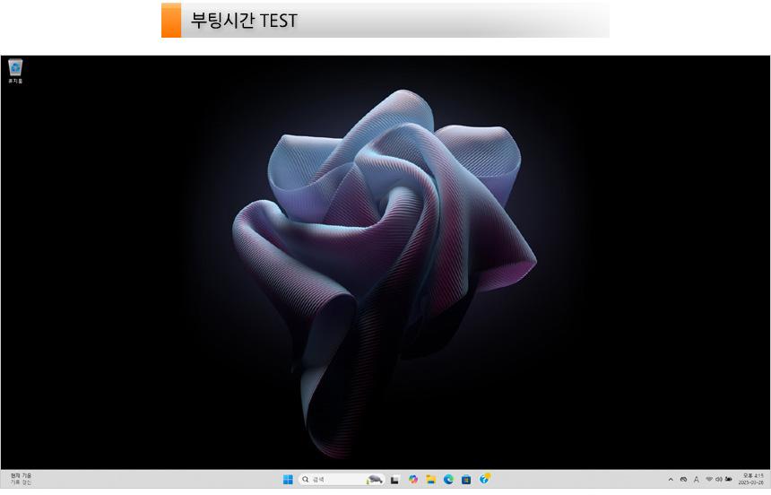 노트북이 완전히 꺼진 상태에서 전원 버튼을 눌러 바탕화면이 노출될 때 까지의 시간 (콜드부팅) 을 측정했는데 13초가 소요되는 것을 확인할 수 있었다. 기다림의 지루함 없이 노트북을 사용할 수 있을 것이다.