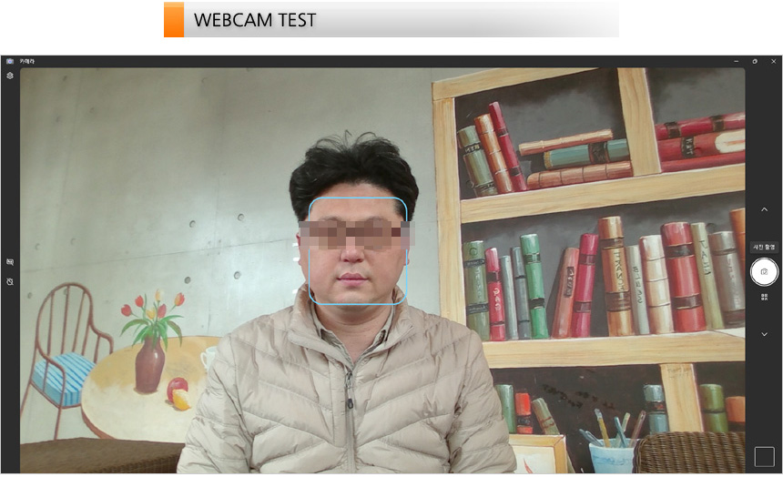 웹캠 화질을 확인하고 있는 모습으로 HD웹캠을 지원하는 경쟁 모델들과 달리 1080P 웹캠이 설치되어 화질이 상당히 뛰어난 것을 확인할 수 있었다. (HD웹캠과 충분히 구분할 수 있는 수준이다.) 화상회의가 많다면 만족하며 사용할 수 있을 것이다.