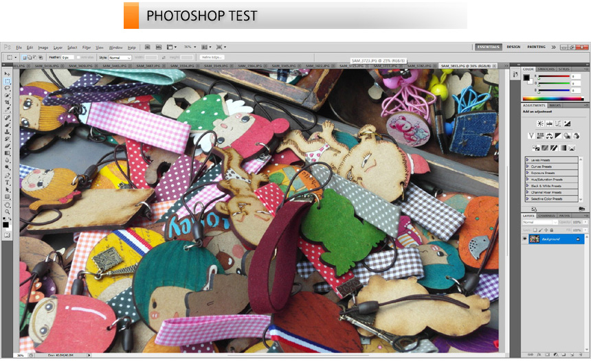 사진편집 테스트를 진행하고 있는 모습으로 부드럽게 작업을 진행할 수 있었다. 대화면 IPS 디스플레이에 고성능 CPU가 탑재한 제품으로 메모리만 8GB 추가해 듀얼채널로 만들어 주면 디자인 용도로 사용할 수 있다. @ 총 46장의 원본 사진 (총 180MB) 을 로딩하는데 걸리는 시간을 측정했는데 21초가 소요되었다.