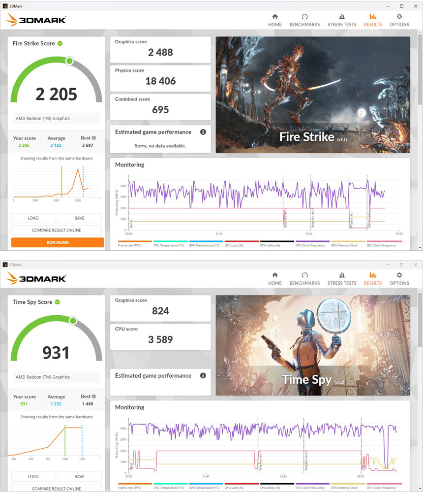 3DMARK를 이용해 3D 성능을 확인하고 있는 모습으로 가벼운 온라인 게임 정도는 충분히 실행할 수 있는 스코어를 보여주었다.
