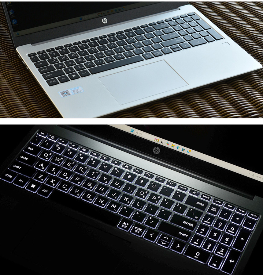 키보드의 모습으로 15.6형 대화면 노트북 답게 텐키가 포함된 풀사이즈 키보드가 장착되어 있다. 또한 구형 모델들과 달리 LED 백라이트가 추가되어 야간에도 편하게 노트북을 사용할 수 있다. (밝기조정과 ON/OFF가 가능하다.) 참고로 비슷한 가격대의 노트북중 상당수가 LED 백라이트를 지원하지 않는다. 큰 매리트중 하나라 말씀드린다.