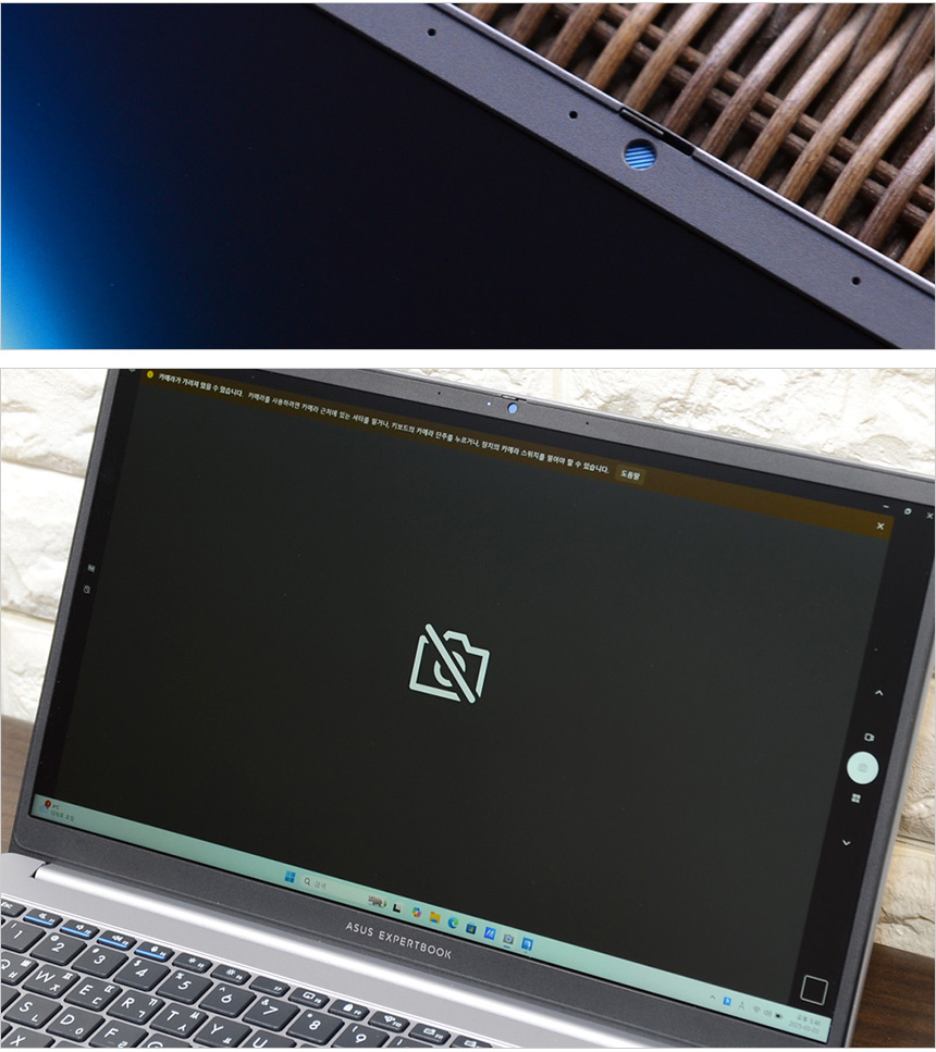 높은 보안성을 요구하는 커머셜 노트북 답게 프라이버시 셔터를 지원하고 있다. 사진과 같이 셔터를 밀어주면 카메라가 가려져 해킹등으로 노트북 조작이 가능해진다 하더라도 웹캠을 통한 기업 정보 노출이나 사생활 침해를 미연에 방지할 수 있다.