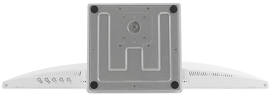 중앙에는 75mm 베사홀이 설치되어 벽에 걸거나 ARM 등에 장착해 사용할 수 있으며 (툴리스 방식의 받침대를 지원해 손쉽게 탈착할 수 있다.) 베사 연장볼트를 제공해 설치 편의성을 높였다. 또한 하단 중앙에는 DP 1.4 단자와 HDMI 2.1 단자를 지원해 PC는 물론 게임콘솔이나 IPTV, OTT 플레이어 등을 손쉽게 연결할 수 있으며 스마트폰이나 노트북 연결을 위한 C타입 단자도 제공된다. (PD충전 지원으로 연결과 동시에 디바이스가 충전된다.)