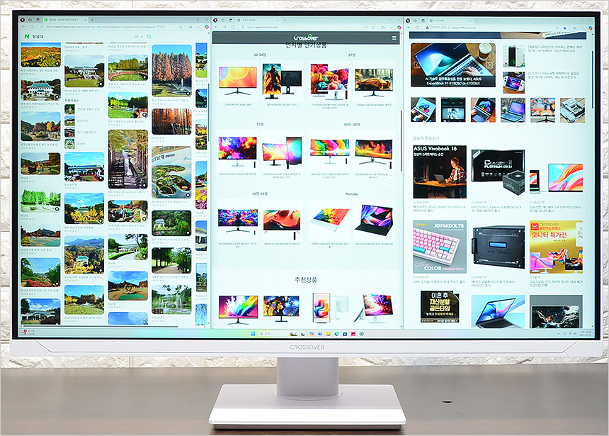 4K 해상도 지원으로 넓은 작업영역을 제공한다. 사진과 같이 4개의 웹페이지를 띄어두고 작업할 수 있어 게임이나 동영상 감상은 물론, 멀티테스킹 용도로도 손색이 없다. 또한 문자가독성을 높이는 크로마서브 샘플링 4:4:4 모드 지원으로 편하게 글을 읽을 수 있었다.
