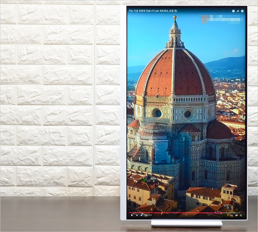 화질 테스트를 진행하고 있는 모습으로 IPS 패널 특유의 진한 색감이 인상적이었으며 4K 특유의 디테일은 QHD 이하의 모니터들과 분명한 차이를 보여주었다. 높은 색영역을 지원하는 모델로 전문적인 디자인 작업 까지는 힘들수 있지만 심플한 디자인 용도로는 충분히 활용할 수 있다. 또한 1,000 : 1 의 고정 명암비를 지원해 그레이스케일 차트를 확연히 구분할 수 있었다. 특히 5백만대 1의 동적 명암비에 HDR 지원으로 자연스러운 명암의 변화를 경험할 수 있다.