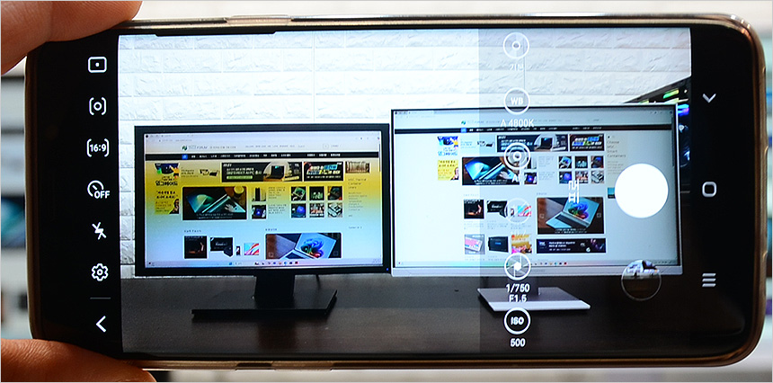Fast IPS 패널을 탑재한 모델답게 시야각의 불편없이 사용할 수 있다. 상단의 사진은 시야각 테스트를 진행한 모습으로 극단적인 각도에서도 채도저하나 반전은 발생하지 않는 것을 확인할 수 있었다.