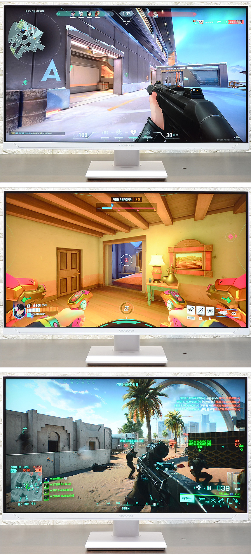 발로란트와 오버워치2, 배틀필드 2042 등의 FPS 게임을 이용해 테스트를 진행하고 있는 모습으로 1ms 응답속도 지원으로 잔상등의 불편없이 게임을 즐길 수 있었으며 4K 해상도에서 144Hz 주사율을 지원해 65Hz 주사율을 지원하는 일반 4K 모니터와는 확연히 비교되는 부드러움을 경험할 수 있었다. 특히 끊어지거나 늘어지는 느낌없이 정확하게 영상을 확인할 수 있었으며 적의 공격시 즉각적인 대응이 가능했다.