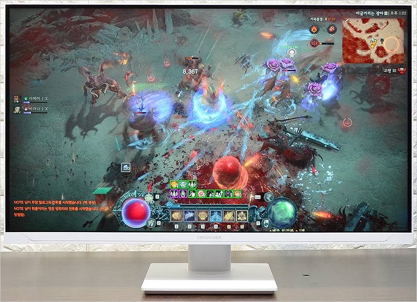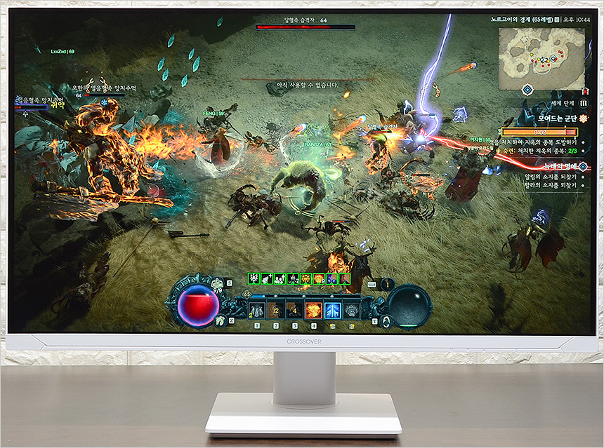 디아블로 4와 포르자 호라이즌 5를 플레이 하고 있는 모습으로 색 선명도가 상당히 뛰어난 것을 확인할 수 있었으며 프리싱크와 지싱크 호환 기술을 제공하는 모델답게 빠르게 움직이는 레이싱 게임에서도 화면을 찢어짐 현상은 느껴지지 않았다. 밝기가 낮으면 시인성이 떨어져 게임을 원활하게 즐길 수 없는 디아블로 4 나 P의 거짓 등에서 배경과 캐릭터의 완벽에 가까운 구분감을 제공해 편하게 게임을 플레이 할 수 있었다. (다양한 화면모드 제공으로 어떤 게임도 원활하게 플레이 할 수 있다.)