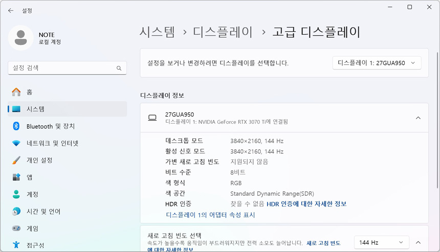 4K@144Hz를 완벽하게 활용하고 싶다면 반드시 고성능 PC를 사용해야 한다. 특히 3D 성능에 가장 큰 영향을 미치는 그래픽카드의 경우 RTX 4070 이상급의 그래픽카드 사용을 권장한다. 케이블 선택도 중요해 기본 제공되는 케이블을 사용하거나 서드파티 제품을 사용시 스펙을 자세히 확인하기 바란다.