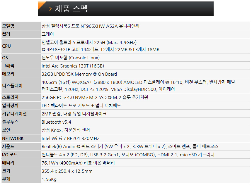 @ 삼성 갤럭시북5 프로 NT965XHW-A52A 유니씨앤씨 보러가기