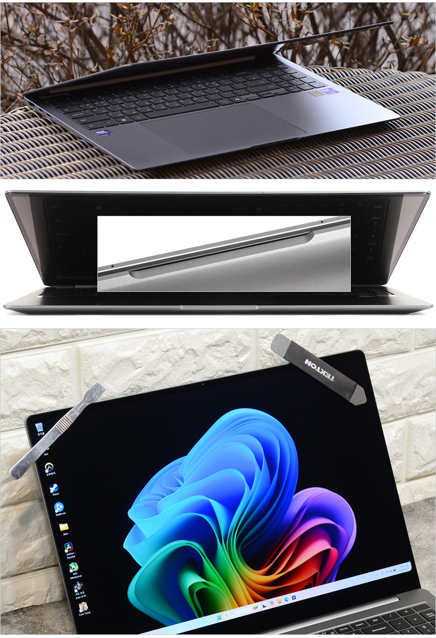 다이나믹 AMOLED 2X 디스플레이를 탑재한 노트북으로 시야각 없는 선명한 영상을 즐길 수 있다. 상단의 사진은 시야각 테스트를 진행하고 있는 모습으로 극단적인 각도에서도 시야각으로 인한 불편은 느껴지지 않았다.