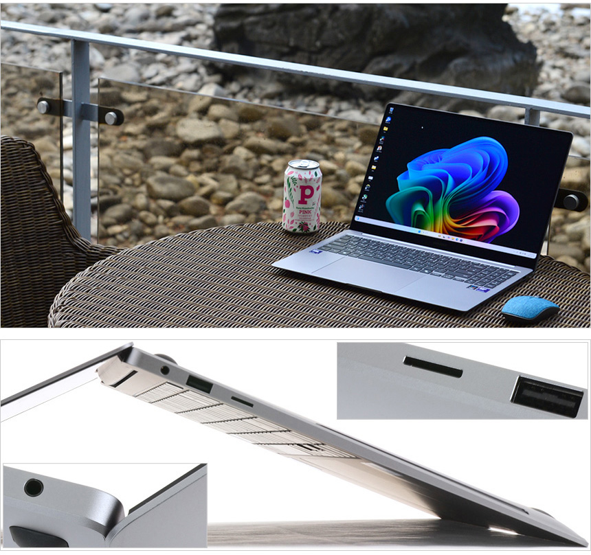 노트북 후면부의 모습으로 고성능 슬림 노트북 답게 통풍구가 설치된 것을 확인할 수 있다. (울트라 5 프로세서를 탑재한 모델임에도 애로우레이크 225H 프로세서의 발열을 효과적으로 제어하기 위해 듀얼팬을 적용했다.)