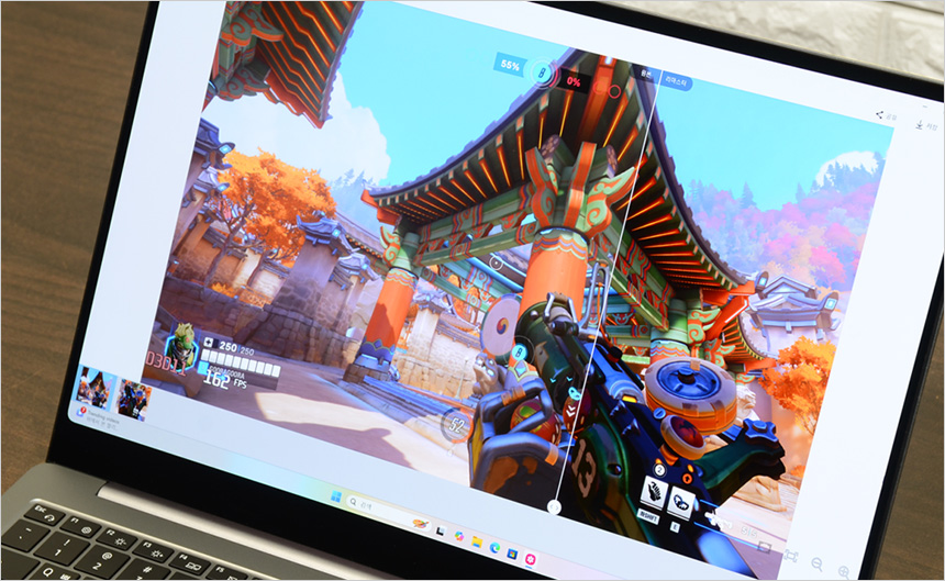 4K 고화질 동영상을 이용해 멀티미디어 테스트를 진행하고 있는 모습으로 16형 대화면에 슬림 베젤 지원으로 높은 몰입감을 경험할 수 있었으며 AMOLED 특유의 진한 컬러감과 베사 HDR 기술 지원으로 깊이감 있는 영상을 즐길 수 있었다. 폭발적인 사운드까지 더해진 노트북으로 동영상 감상용으로 유용하게 사용할 수 있을 것이다.