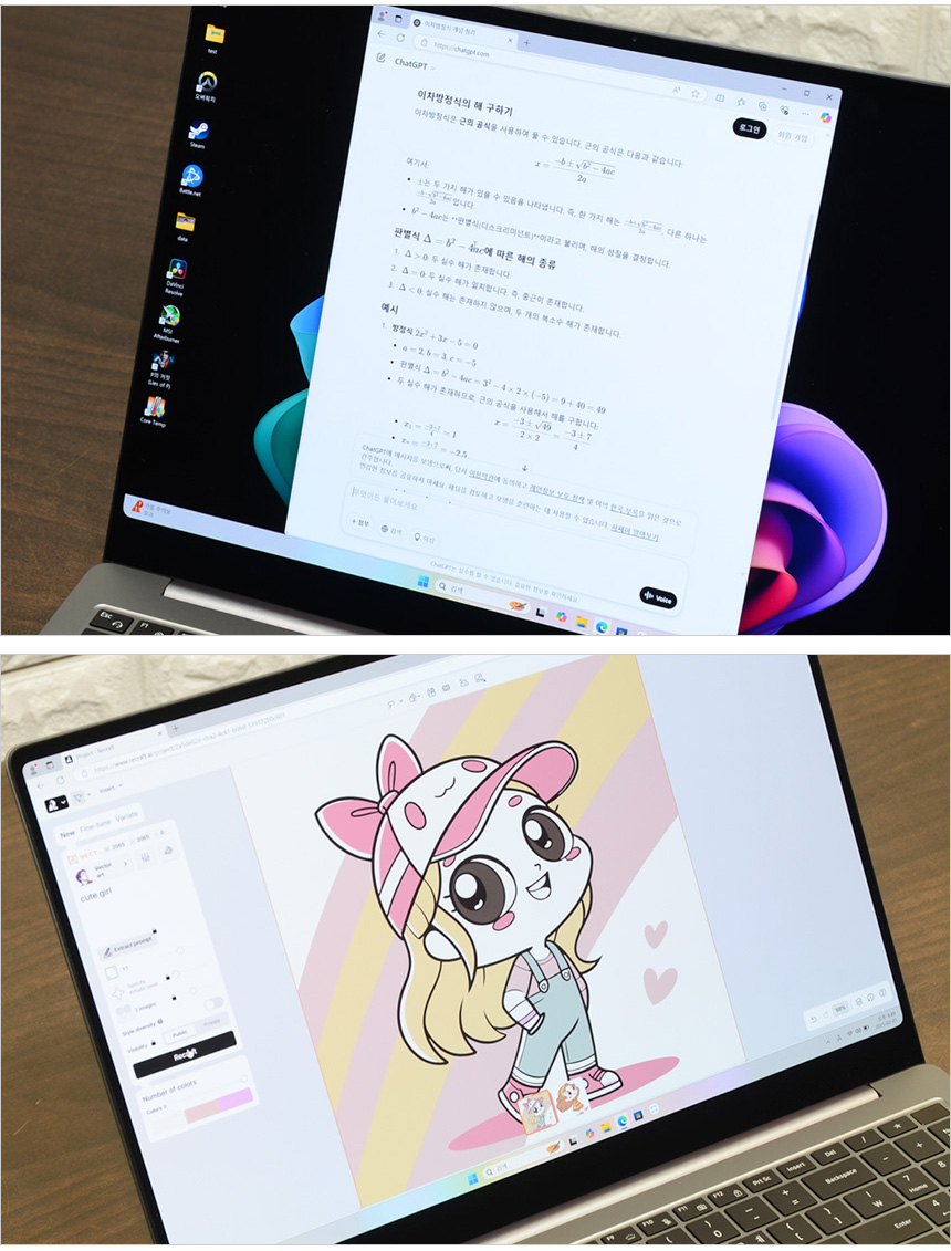 많은 유저들이 업무용으로 활용하고 있는 Chat GPT와 이미지 생성형 AI Recraft도 실행해 보았는데 별다른 딜레이 없이 빠르게 실행되는 것을 확인할 수 있었다.