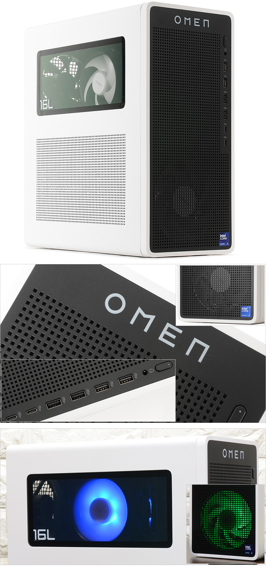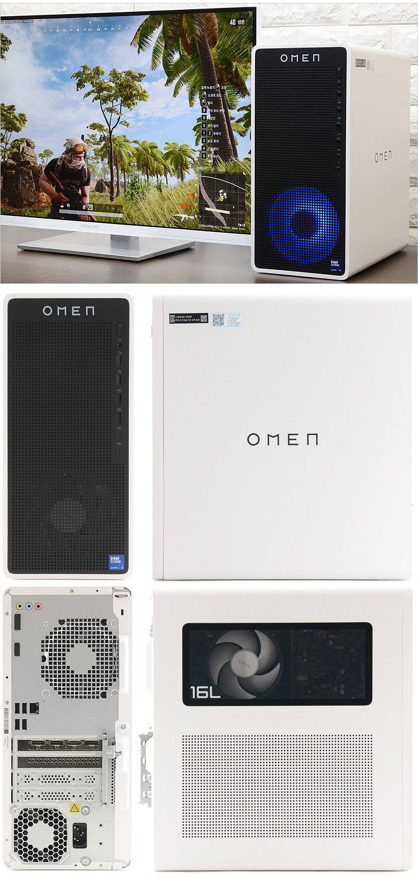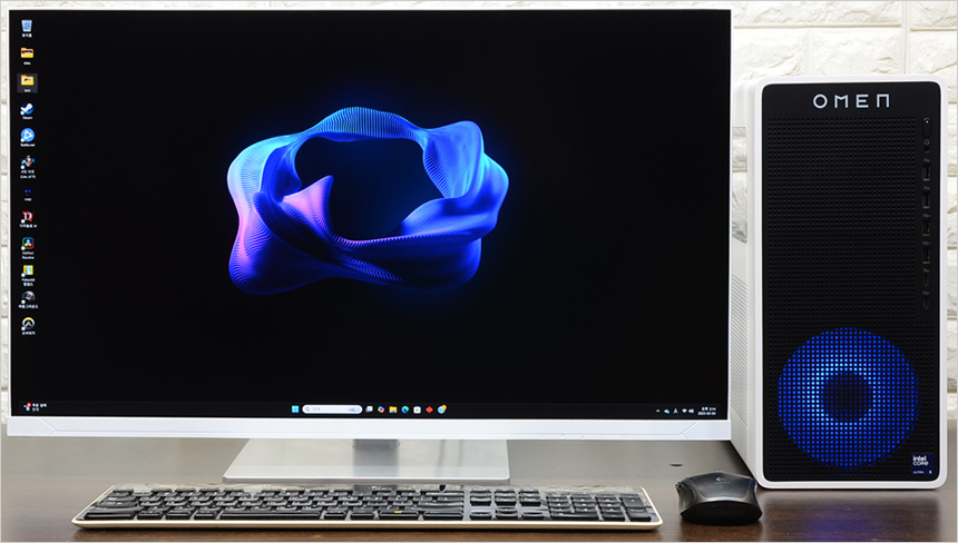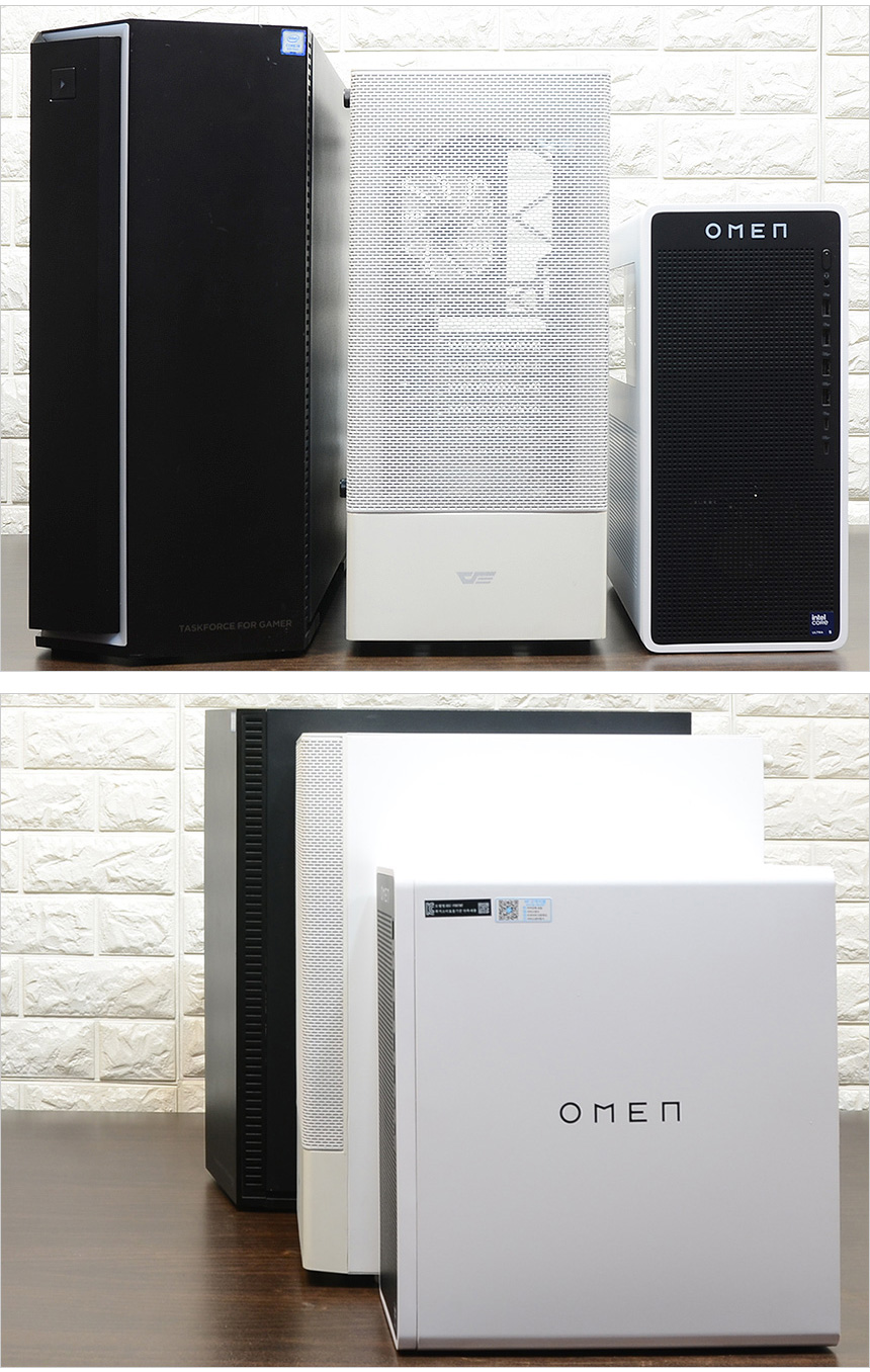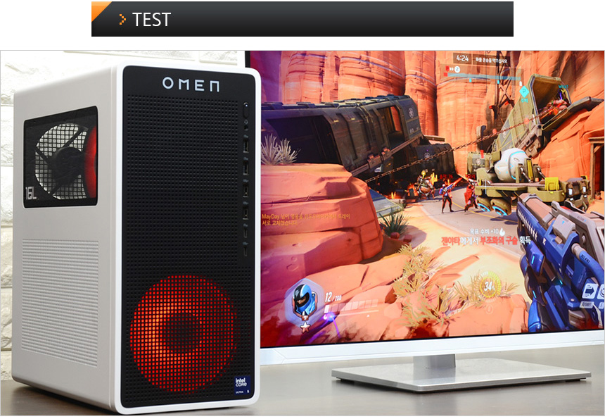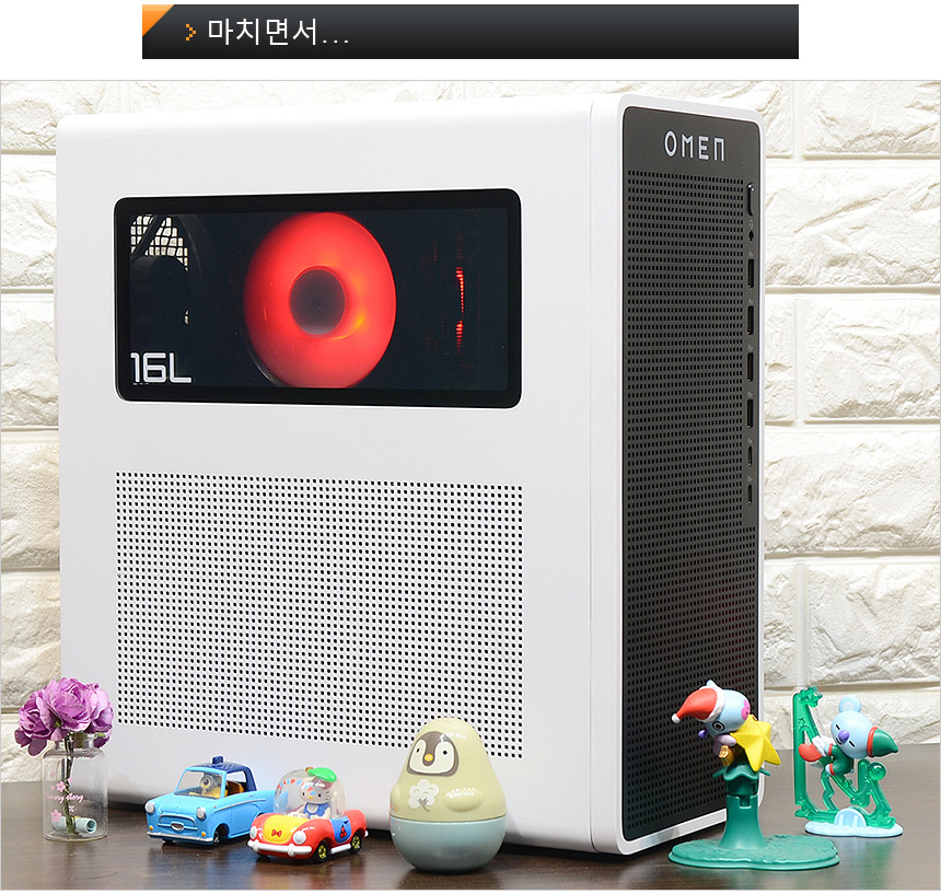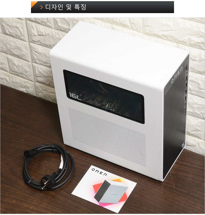 그에반해 리뷰를 진행한 HP OMEN TG03-0002KR 은 테스트를 위해 제품을 개봉했을 때부터 깜찍하고 세련된 디자인에 눈을 뗄 수 없었다. 사이즈를 줄여 공간활용성을 높이는 동시에 터프한 모습을 보여주는 일반 PC와 달리 아기자기한 멋을 살렸으며 블랙과 화이트 컬러의 조합에 높은 마감완성도, RGB 팬 적용으로 세련된 분위기를 자아낸다. (특히 화이트 모니터와 좋은 궁합을 보여주는 것이 인상적이었다.) PC를 구입할 때 디자인이나 공간 활용성을 중요하게 생각한다면 강추하고 싶은 모델이다.