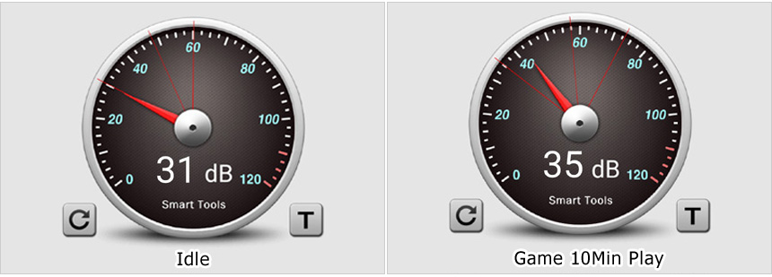 팬소음 테스트를 진행하고 있는 모습으로 CPU와 그래픽카드, 케이스에 각각 팬이 설치되어 Idle 상태에서도 미세하게 팬소음이 발생하는 것을 확인할 수 있었다. 단, 게임을 실행하면 팬소음이 확연하게 커지는 일부 게이밍PC와 달리 시끄러운 소음을 들려주지 않아 스트레스 없이 게임을 즐길 수 있었다.