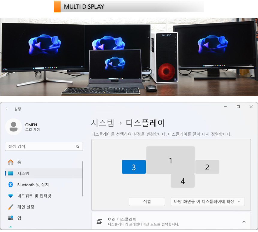 RTX 4060 그래픽카드는 최대 4개의 모니터 연결이 가능하다. 상단의 사진은 연결 테스트를 진행하고 있는 모습으로 4K 모니터를 비롯해 모든 모니터가 원할하게 작동하는 것을 확인할 수 있었다. 다양한 창을 띄어두고 업무를 보는 유저들이나 학생들이 유용하게 활용할 수 있을 것이다.