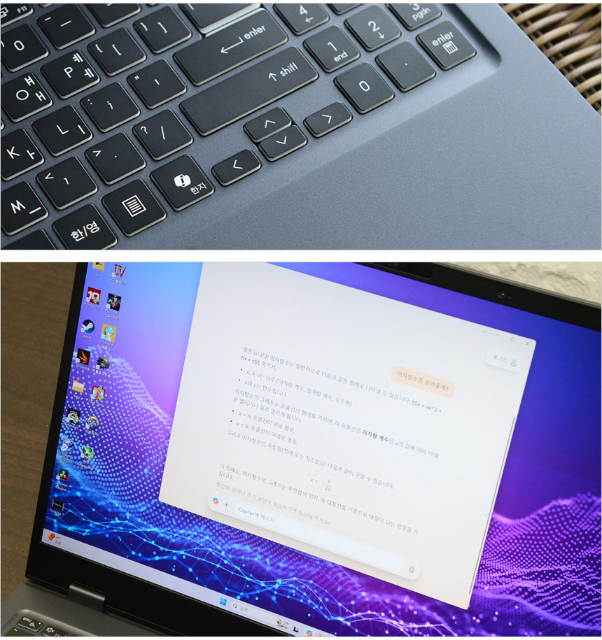 MS 코파일럿을 편하게 사용할 수 있도록 전용키를 제공한다. 상단의 사진은 코파일럿을 실행한 모습으로 궁금했던 부분을 쉽고 빠르게 알려주는 것을 확인할 수 있었다. @ 최근 업무용으로 코파일럿을 유용하게 사용하고 있다. AI 활용성을 높이고 싶다면 우선 코파일럿부터 입문해 보기 바란다.