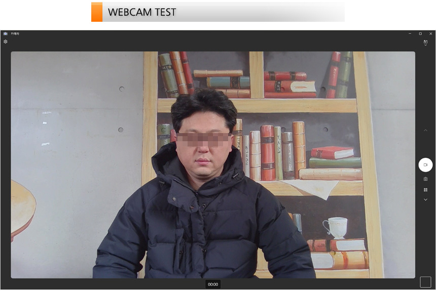 웹캠의 화질을 확인하고 있는 FHD 고해상도 지원으로 어두운 실내였음에도 HD웹캠과 비교되는 뛰어난 디테일을 보여주었다. 참고로 이 제품은 ALS 센서를 탑재해 조명이 약한 곳에서도 선명한 영상을 보여주며 노이즈를 줄여주는 기술도 적용되어 있다. 또한 공간 어레이 마이크가 설치되어 어디서나 선명한 음성을 제공한다.
