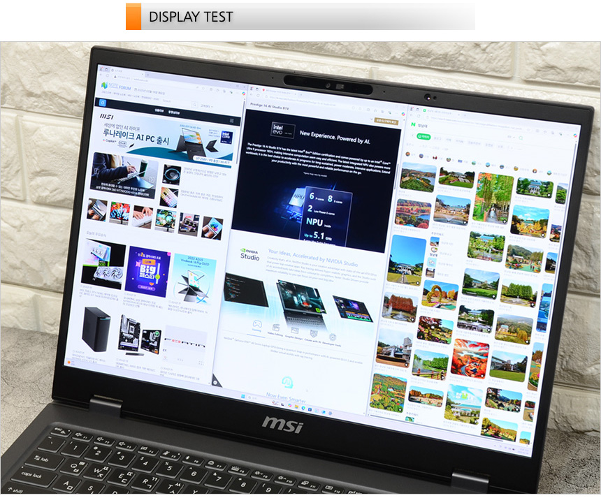 4K 동영상을 이용해 멀티미디어 테스트를 진행하고 있는 모습으로 16형 대화면에 UHD+ 해상도의 OLED 패널을 탑재해 일반 노트북과 확연한 화질차를 경험할 수 있었다. (진한 블랙 표현이 특히 마음에 들었다.) 사운드 퀄리티도 상당히 뛰어난 제품으로 동영상 감상용으로 유용하게 사용할 수 있을 것이다.
