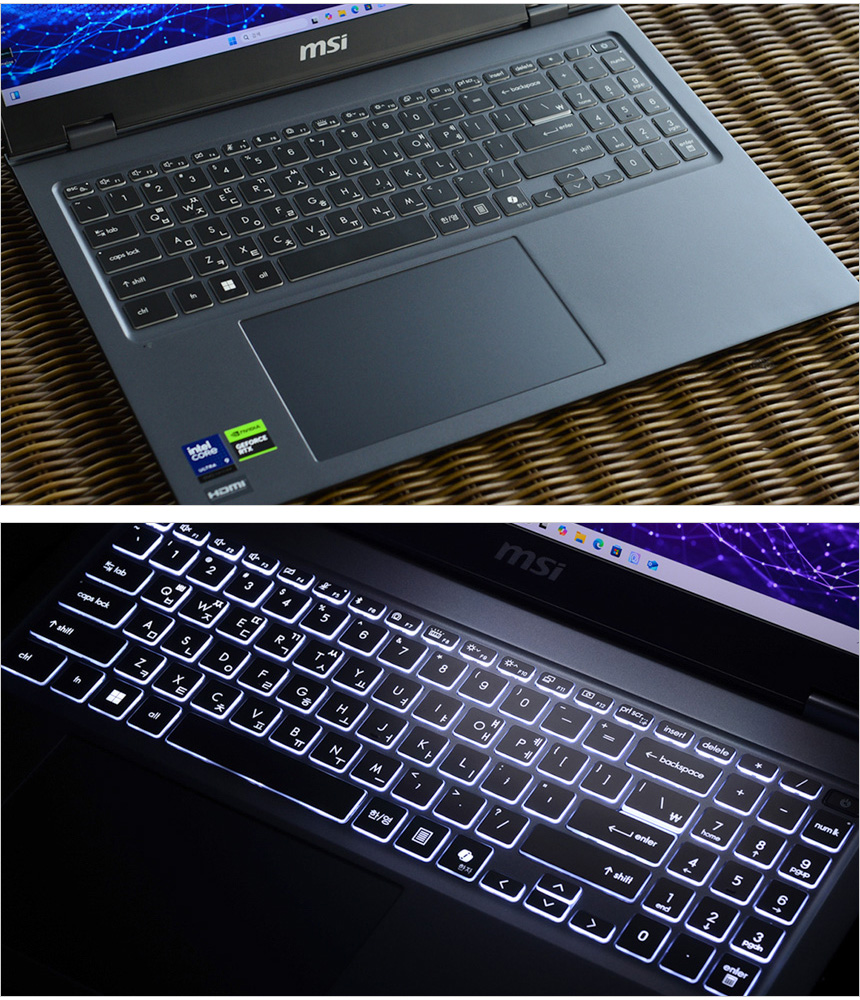 99Whr 대용량 배터리를 탑재해 슬림 노트북 수준의 긴 배터리 사용시간을 지원할 뿐만 아니라 140W PD충전을 지원해 외부에서 전원 걱정없이 사용할 수 있으며 전성비가 뛰어난 애로우레이크 탑재 뿐만 아니라 최신 냉각 시스템인 쿨러 부스트 3를 지원해 열로 인한 스로틀링 없이 쾌적한 환경에서 작업을 할 수 있다. 또한 인텔 킬러 Wi-Fi 7 무선랜카드가 장착되어 대용량 데이터도 무선으로 빠르게 전송할 수 있다.