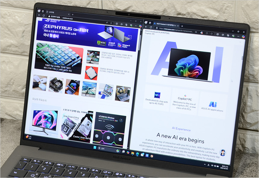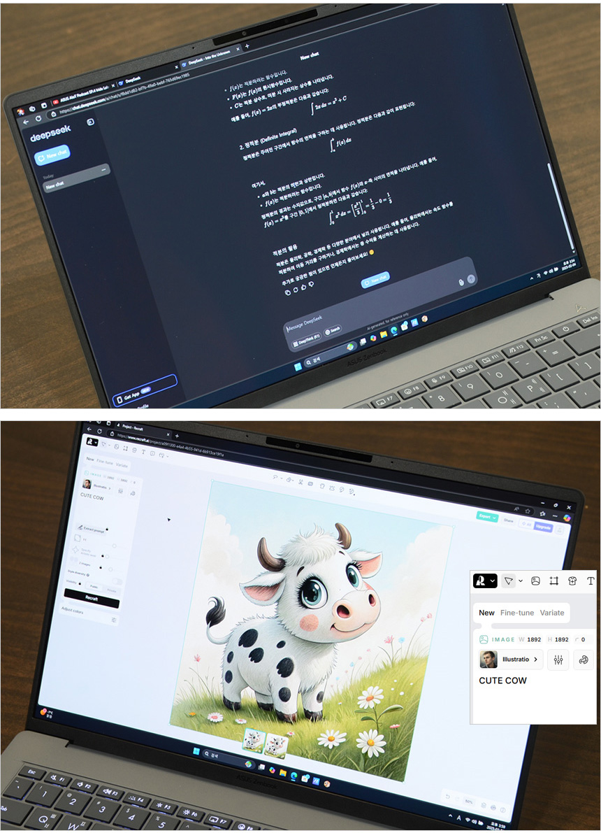 성능에서도 상당히 만족스러운 모습으로 보여주었다. AI 에 특화된 모델답게 코파일럿은 물론 이슈가 되고 있는 딥시크나 기타 생성형 AI를 부드럽게 실행할 수 있었으며 포토샵 등의 프로그램도 원활하게 작동하는 것을 확인할 수 있었다. 문서작업이나 웹서핑 뿐만 아니라 작업용으로도 좋은 대안이 될 것이다.