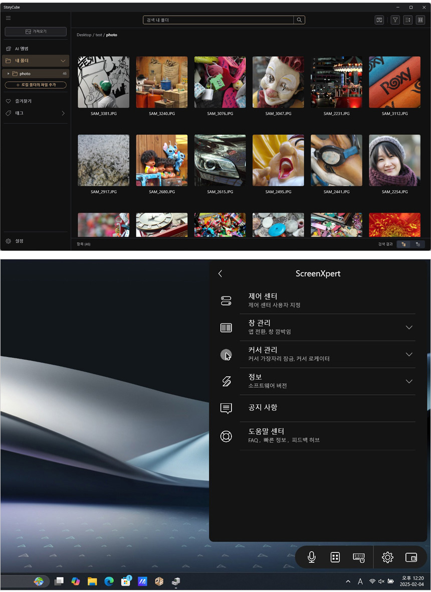 ASUS 에서도 AI 전용 S/W 인 ASUS StoryCube를 지원한다. 꾸준히 쌓이는 사진과 비디오 영상을 더 스마트하고 빠르게 관리할 수 있는 프로그램으로 연결된 장치나 클라우드에 데이터를 손쉽게 가져오거나 내보낼 수 있으며 이름이나 태그, 장치, 위치, 타임라인 등을 통해 손쉽게 원하는 파일을 검색할 수 있다. 또한 노트북을 더 편하게 사용할 수 있도록 스크린엑스퍼트를 지원한다.