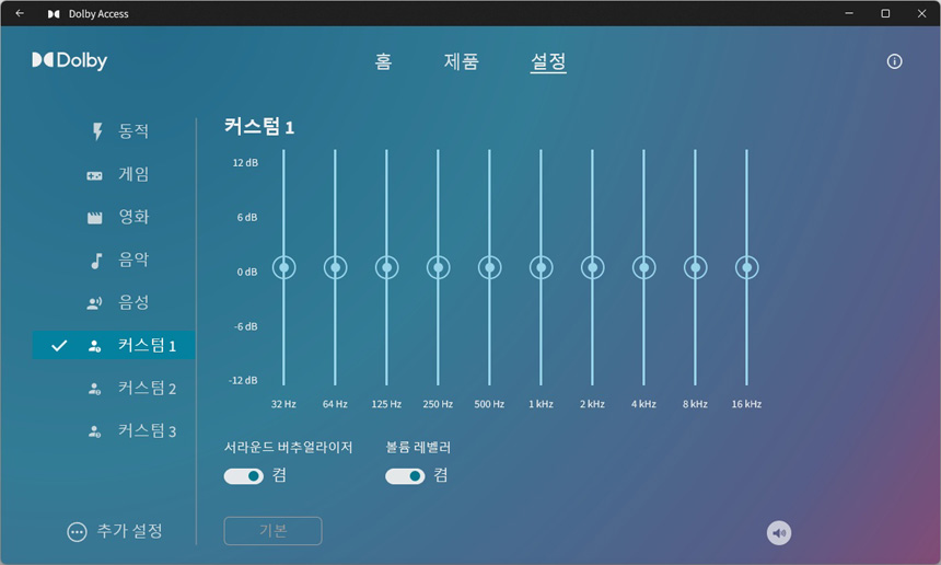 프리미엄 슬림 노트북 답게 돌비 애트모스를 기본 지원해 입체감있는 사운드를 즐길 수 있다. (설정에서 EQ와 다양한 프로파일을 지원해 자신만의 음색을 설정할 수 있다.)