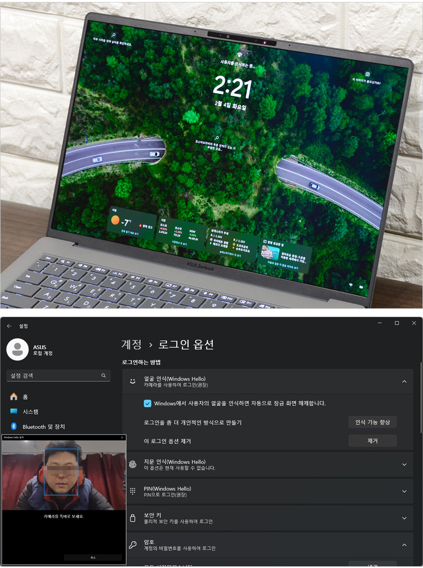얼굴인식 로그인을 사용할 수 있다. 설정-계정에 있는 로그온 옵션에서 윈도우즈 헬로를 실행해 얼굴을 등록할 수 있으며 인식율도 뛰어나 편하게 사용할 수 있었다. (비즈니스 노트북으로도 적합한 모델이다.)