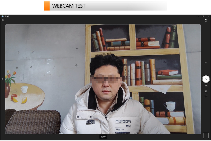 FHD 웹캠의 화질을 확인하고 있는 모습으로 HD 웹캠이 장착된 노트북을 압도하는 선명함을 보여주었다. (선명도와 디테일 모두 대단히 뛰어나다.) 이 제품은 AI 노이즈 캔슬링 까지 지원해 화상회의가 많은 재택근무자나 파견 및 출장이 잦은 직장인 들이 유용하게 사용할 수 있다.