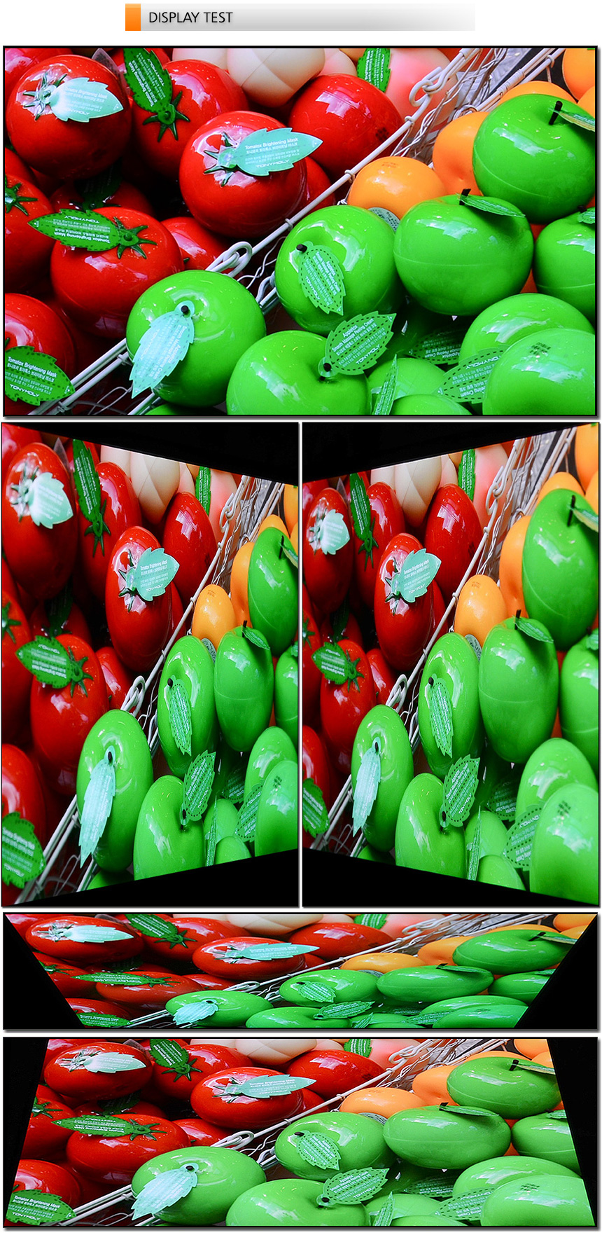 OLED 패널을 탑재해 어떤 각도에서도 선명한 영상을 즐길 수 있다. 상단의 사진은 시야각 테스트를 진행한 모습으로 극단적인 각도에서도 반전이나 채도저하가 발생하지 않았다.