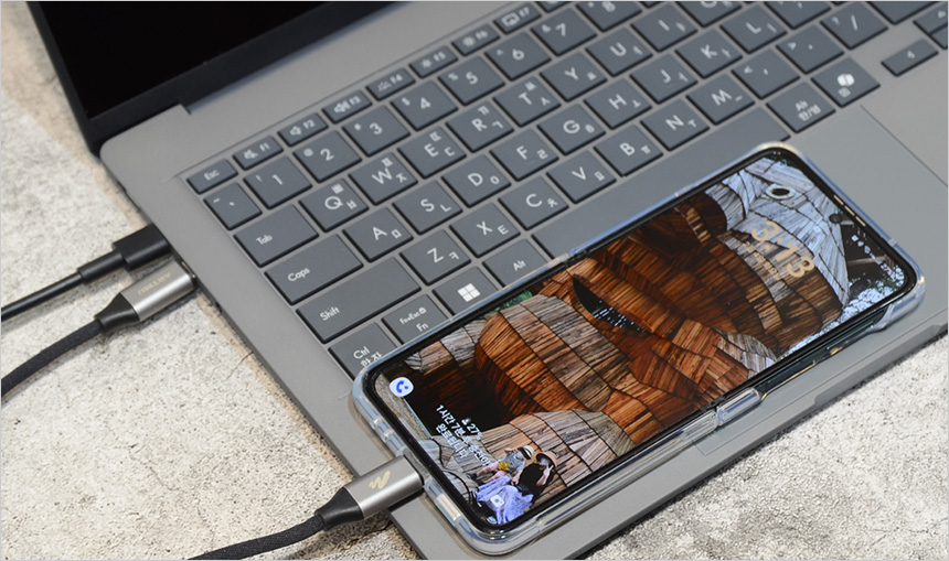 USB 4 단자는 상시전원을 지원해 노트북이 꺼진 상태에서도 스마트폰 충전이 가능하다. (단, 노트북 전원은 연결되어 있어야 한다.) 집이나 사무실에서 편하게 스마트폰을 충전할 수 있다.