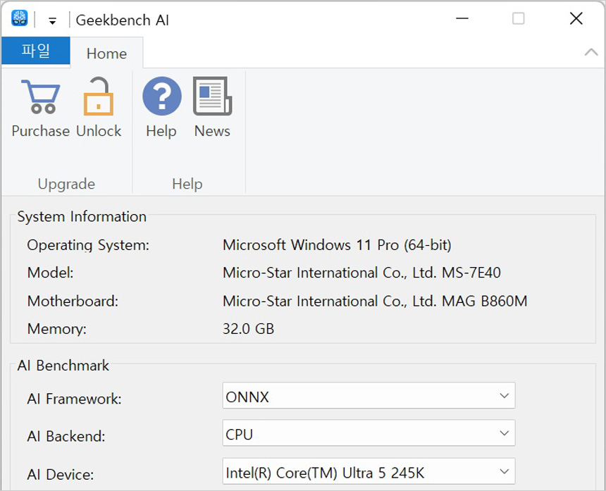 NPU 가 탑재된 AI 프로세서로 긱벤치 AI를 이용해 성능을 테스트 해 보았는데 기존의 프로세서와는 분명한 차이를 보여주었다. (265K 보다는 살짝 낮은 스코어를 보여주었다.) 코파일럿은 물론 생성형 AI 프로그램도 부드럽게 실행할 수 있을 것이다.