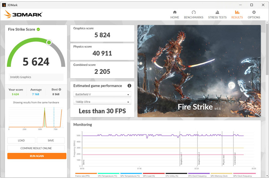 검은신화 오공 벤치마크를 실행한 모습으로 높음 옵션에서 4K 기준 63 프레임을 보여 주었으며 QHD 에서는 69까지 프레임이 높아졌다. 사용했던 RTX 3070 Ti 급의 그래픽카드를 사용할 경우 옵션을 낮추는 것을 추천하며 울트라 옵션에서 게임을 즐기고 싶다면 RTX 4070 이상의 그래픽카드 사용을 추천한다. (DLSS를 활성화 하면 프레임을 높일 수 있다.)
