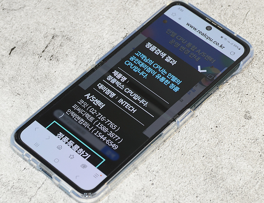 인텔 정품 CPU는 3사 공인 대리점을 통해 신속 정확한 점검과 빠른 교체가 가능하다. 박스에 부착된 QR코드를 스마트폰으로 스캔하면 정품 여부 및 A/S 센터 연락처 확인이 가능해 문제가 생겼을 때 빠르게 대응할 수 있다. @ 인텔 정품 CPU는 어느곳에서나 A/S가 가능하다.