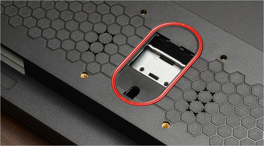 미려한 곡선 라인이 매력적인 스탠드의 모습으로 바닥면에 패드가 부착되어 미끄러짐을 방지한다. 또한 대부분의 모니터와 같이 틸트를 지원해 사용자에 맞게 각도를 조정할 수 있다.