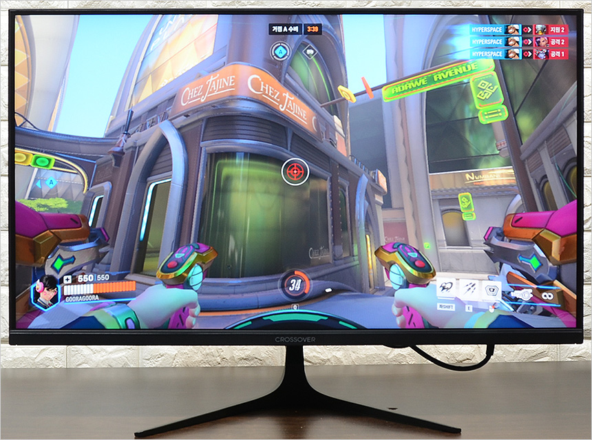 또한 FAST IPS 패널을 사용한 모델답게 일반 게이밍 모니터와 확연히 비교되는 선명함이 인상적이었으며 높은 밝기를 지원해 명확하게 캐릭터와 배경을 구분할 수 있었다. 또한 조준선을 지원해 정확한 사격이 가능했을 뿐만 아니라 프리싱크 뿐만 아니라 지싱크 어댑티브 기능을 제공해 화면 찢어짐 등의 불편없이 게임에 몰입할 수 있었다.