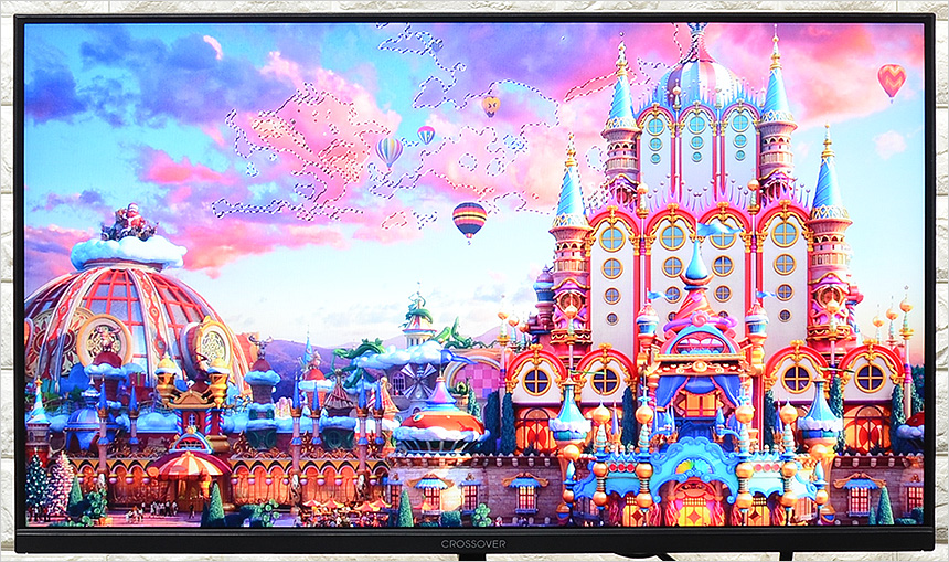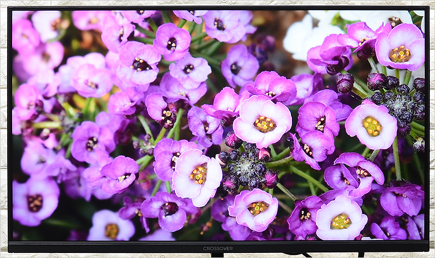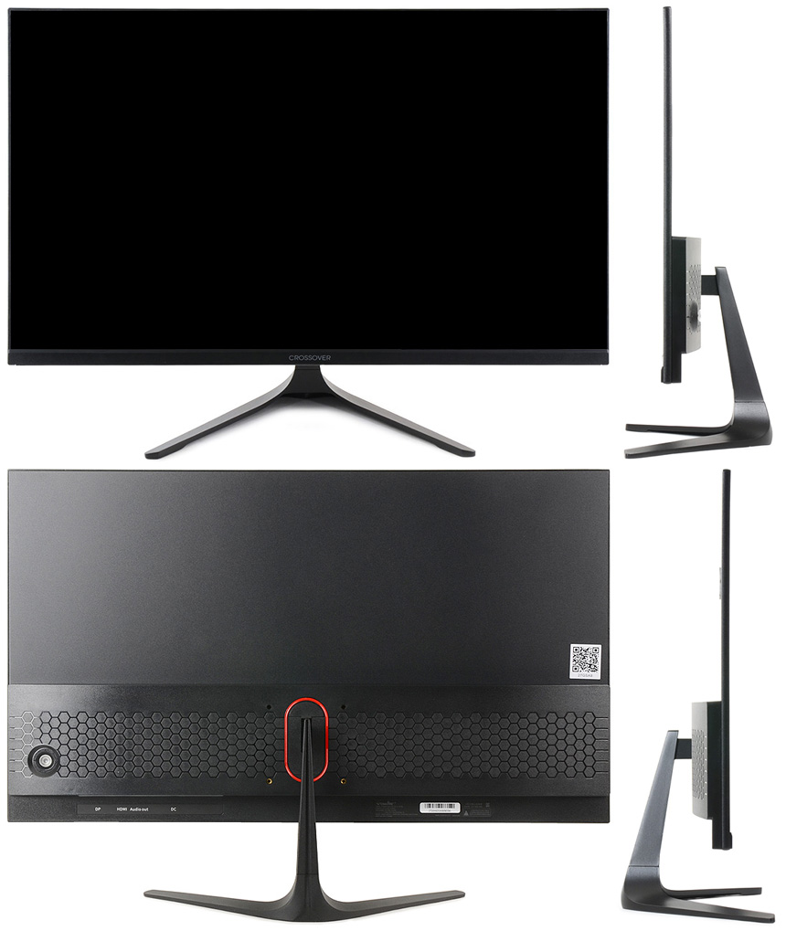 전면 하단부의 모습으로 중앙에 크로스오버 레터링이 세겨져 있다. 이 제품은 눈건강을 생각한 모델로 청색광을 줄여 눈을 보호하는 블루라이트를 지원하는 것은 물론, 지속적인 깜빡임으로 인해 눈에 피로가 쌓이는 것을 방지하기 위해 플리커 프리 기술을 제공한다.
